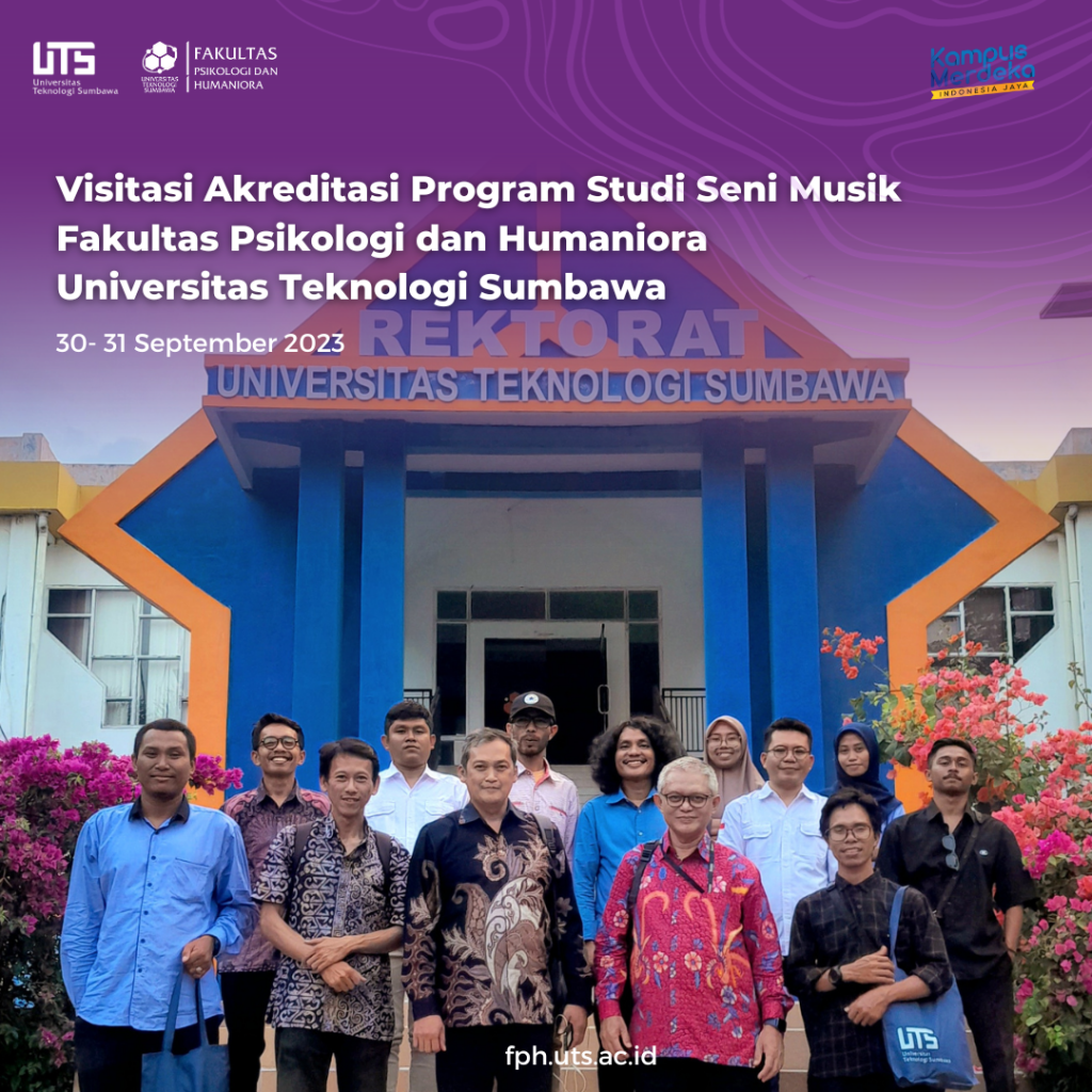 Program Studi Seni Musik Fakultas Psikologi dan Huamniora Universitas Teknologi Sumbawa (UTS) Menerima kundungan dari TIM Asseor Badan Akreditasi Perguruan Tinggi (BAN PT) pada tanggal 30 hingga 31 November 2023. Kunjungan ini merupakan bagain dari proses asesmen lapangan akreditasi program studi Seni Musik. Assesor BAN-PT yang melakukan visitasi Program Studi Seni Musik adalah Prof. Dr. […]